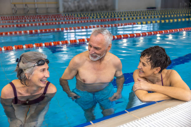 Seniors enjoying swimming exercises at the pool