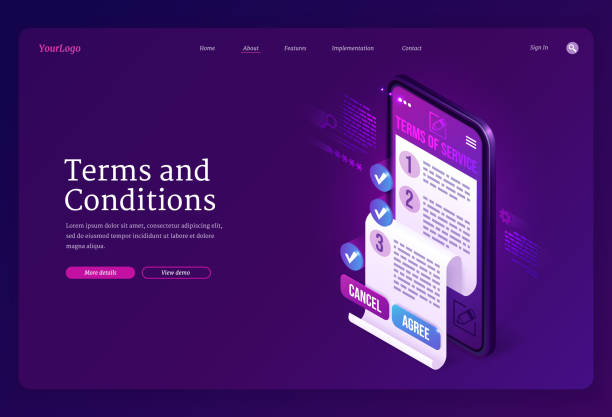Terms and conditions contract signing concept with document on smartphone screen, cancel and agree buttons. User agreement, legal notice service