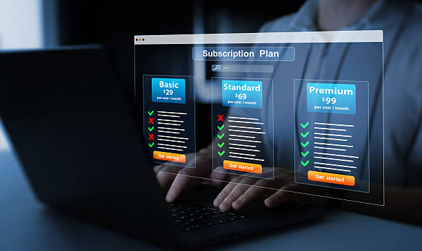 Subscription plan pricing for education or business. Subscription plan offers exclusive access to premium content, special discounts, and priority support. Paid online service subscription plan