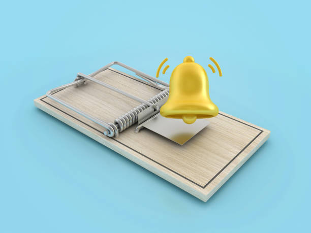 Renewal notification bell over a mouse trap symbolizing the subscription trap